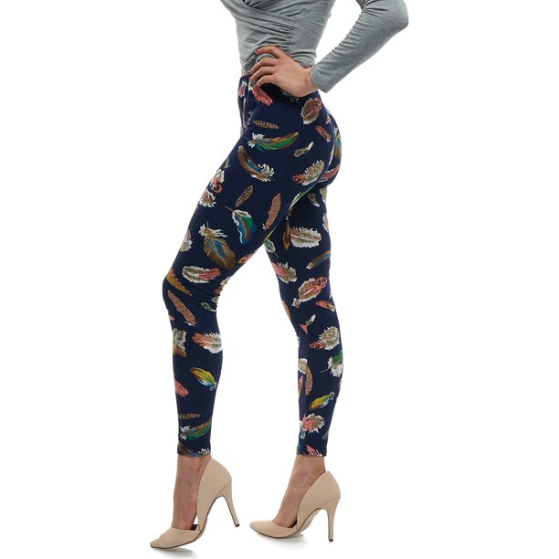 Lmb Lush Moda Extra Soft Leggings For Women With Print Designs For Lounging Running Fitness Yoga And Sleepwear X Small To X Large Feather On Black 57f Walmart Com